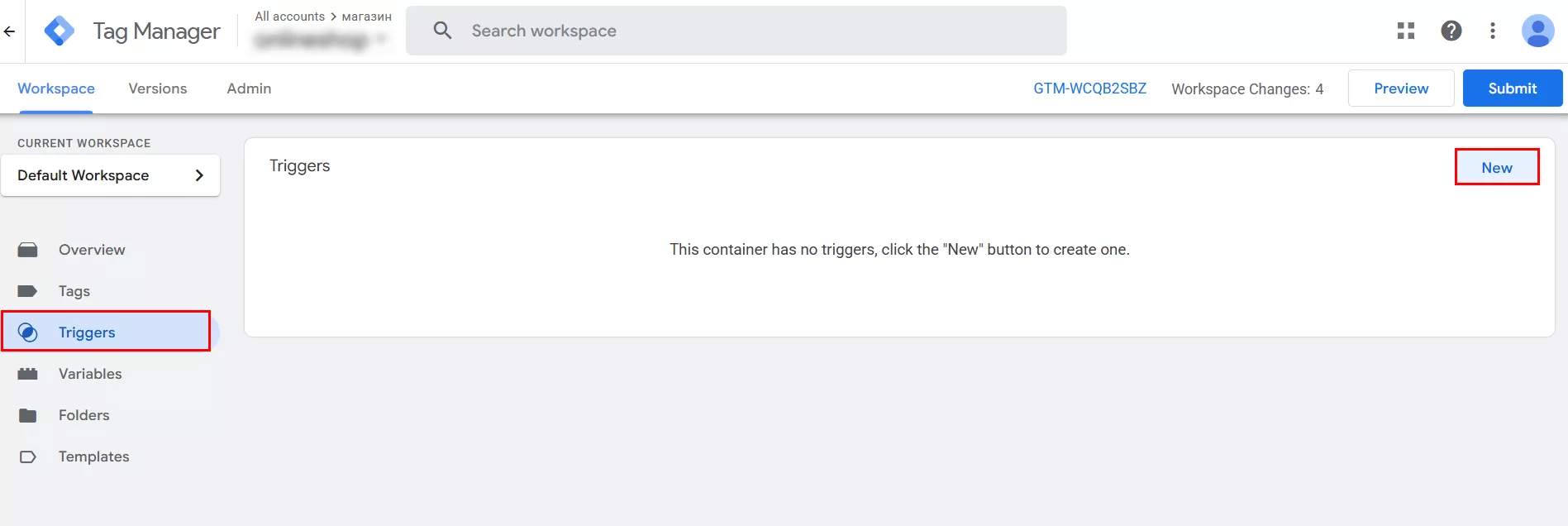 Отидете в раздел „Triggers“ и натиснете бутона „New“.