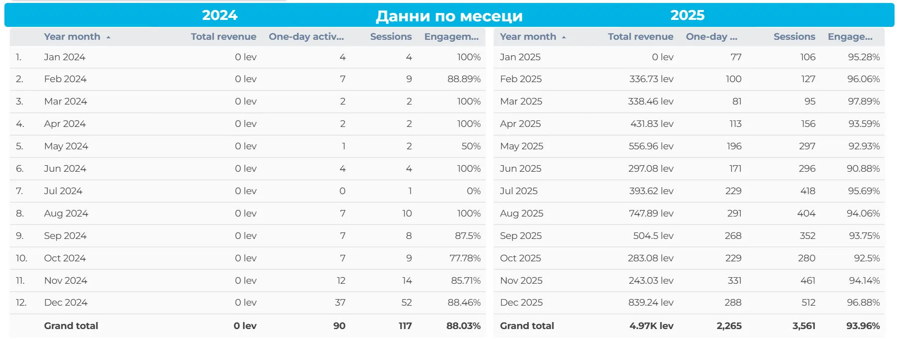 Горното изображение (месечните таблични данни за 2024 и 2025 г.) показва още по-ясно кога AI каналът преминава от тестова фаза към реален източник на приходи.
