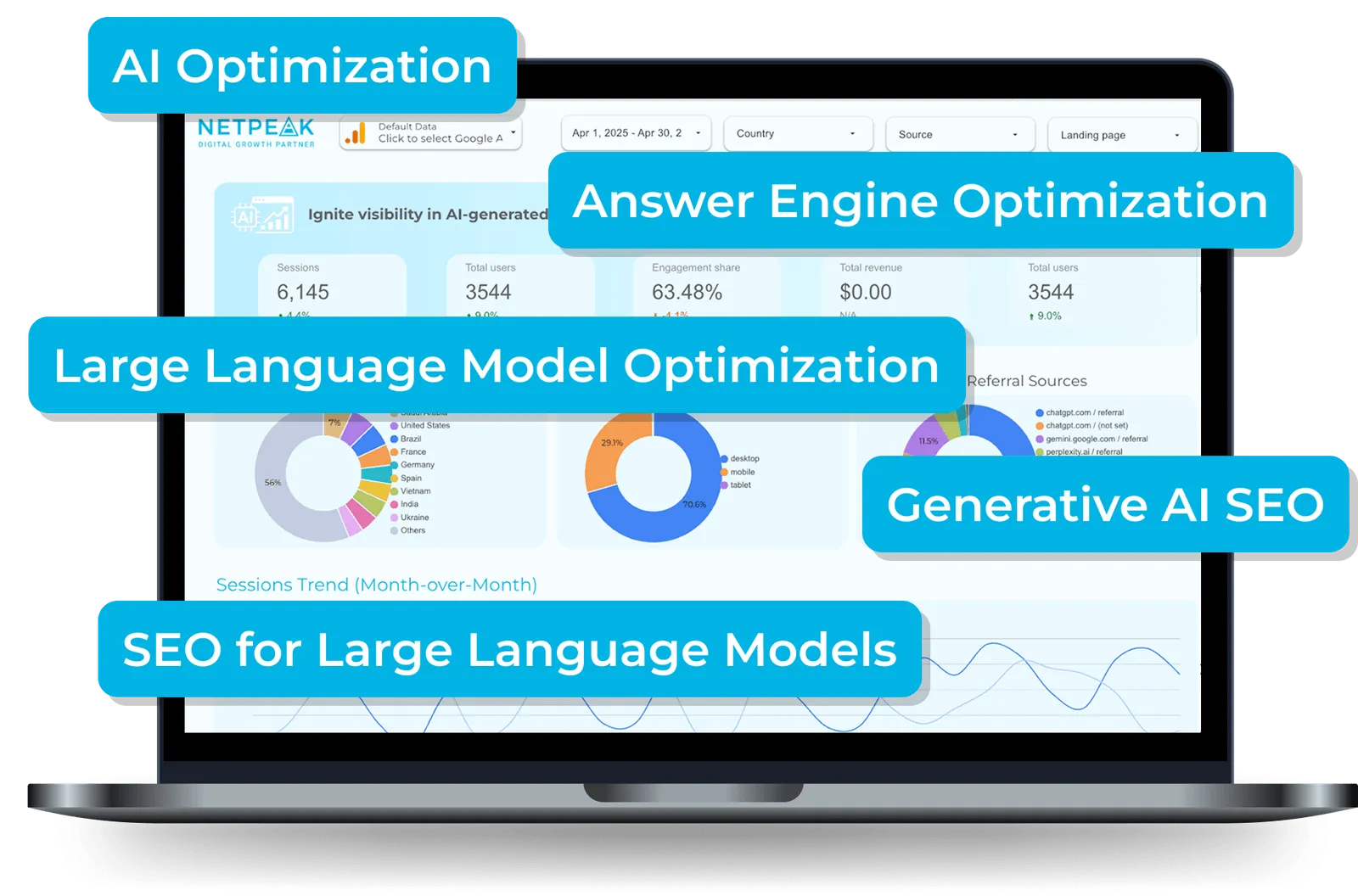 В Netpeak вярваме, че GEO оптимизацията е ключът към видимостта в ерата на изкуствения интелект. Това е специализирана стратегия, която надгражда стандартното SEO, като адаптира сайтовете към изискванията на генеративни инструменти като ChatGPT, Gemini, AI Overview, Bing AI и други. Целта ни е не само да сте сред първите в резултатите, а сайтът ви да бъде достоверен източник и цитиран в AI отговорите.